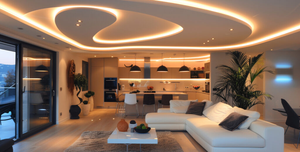 The lighting methods illuminate the living room and other areas where you need to showcase the surroundings.